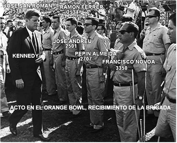 Kennedy en el Orange Bowl, pasando revista a los brigadistas.